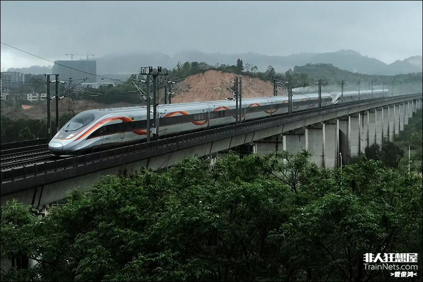 2024年4月,广东清远,暴雨过后重联CR400AF-Z接近银盏水库。