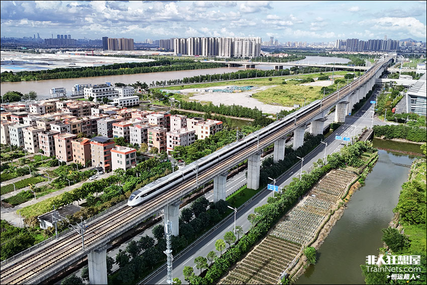 2024年6月。广东城际列车行驶在广佛南环佛山北滘段,即将停靠北滘西站。