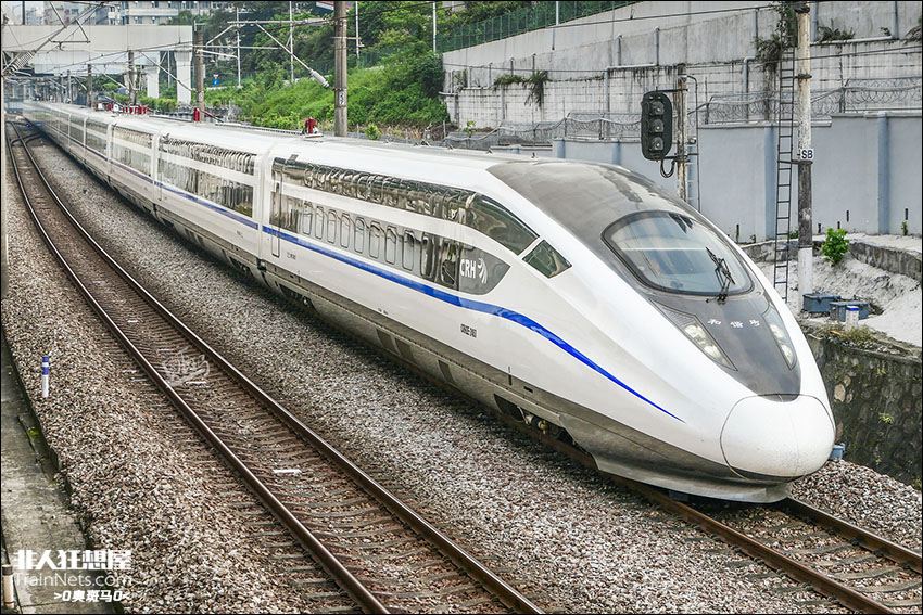 2024年6月22日。广东广州。CRH2E纵向动卧执行D903次(北京西-深圳北)驶过小北,前往广州东站方向。自6月15日调图后,三对京深动卧改经由京广线京广高铁、花广联络线、广深一二线、莞塘广联络线、京港高铁运行,这一改动也让全路仅三组的纵向动卧得以穿行于广州市城区,给予广大车迷们更多拍摄机会。