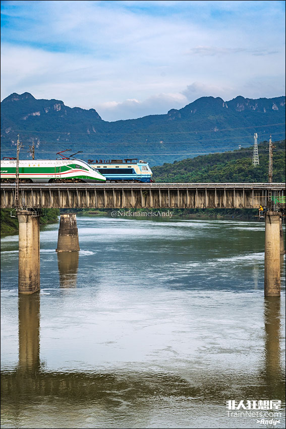 值得一提的是,这张交汇照片是作者进行铁路摄影活动这么长时间以来拍过的最为巧合的一次列车交汇。原本只是打算只拍一个下行K9207次(韶8)过桥与护路工人的同框画面,但未曾想在英德站磨蹭了好一会儿的K9207次上桥前就被上行的D190次挡住了,可巧就巧在D190比它稍快一些,最终在镜头前错开,才有了韶8与AD钙新老两代直特动力并驾齐驱的奇妙画面。
