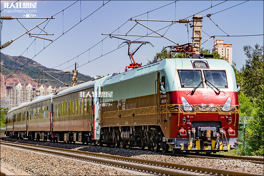 2024年7月1日。西宁市。兰青线。由10辆编组组成的“丝路梦享号”(Silk Road Express)首次亮相,担当Y467次前往格尔木方向。