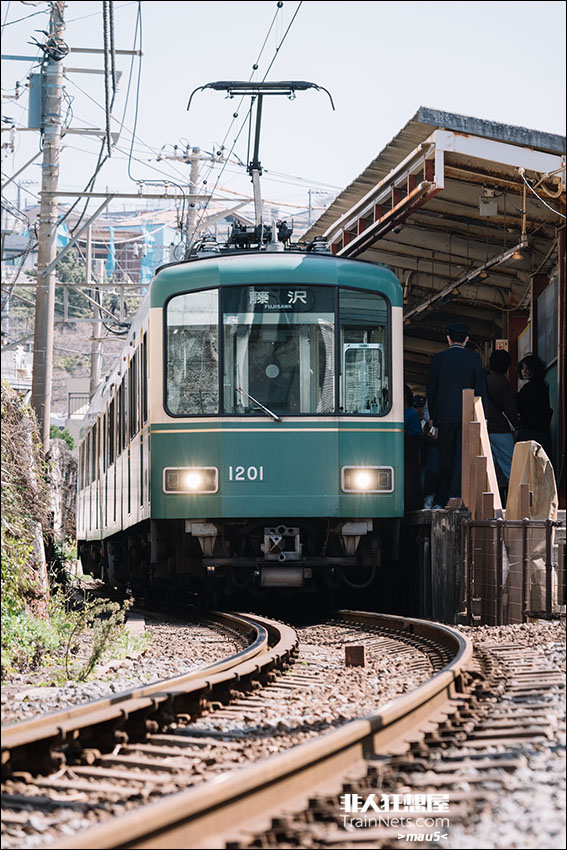 2024年4月。江之岛电铁线七里滨站,1000型列车准备发车前往藤泽站。