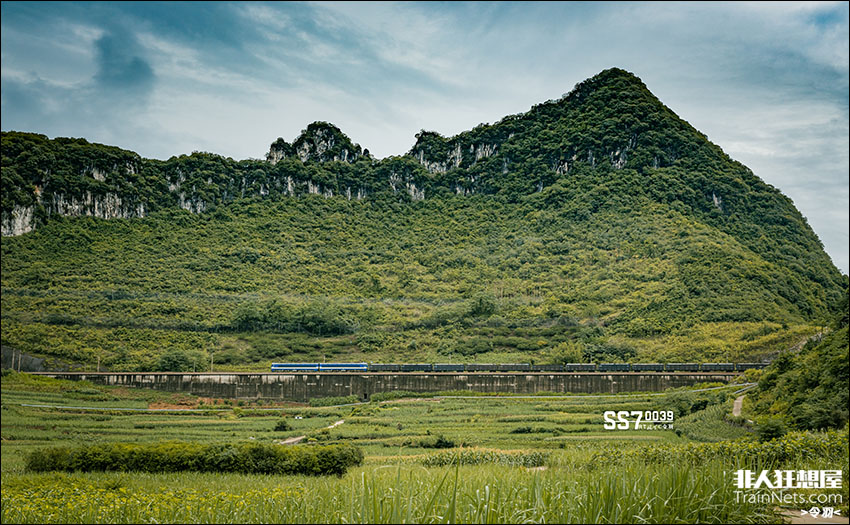 2023年7月。广西柳州。黔桂线。蓝色精灵穿行在翠绿山峦中。