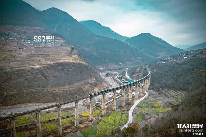 2024年2月。成昆线。客车5620次(普雄-峨眉)通过越西三宝之一的铁马大桥。