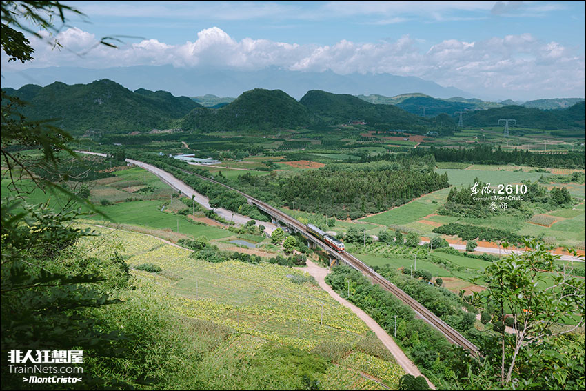 2024年7月6日,益湛线,“一虎拉一车”永贺通勤57016次接近红岩村,列车即将停靠洪塘站。