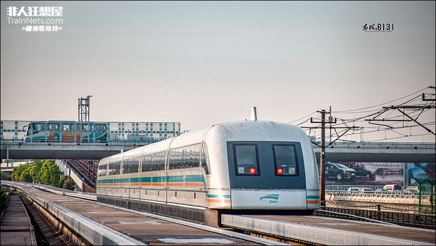 2024年5月,上海磁浮线列车乘着夕阳从浦东国际机场站驶出,前往龙阳路站。
