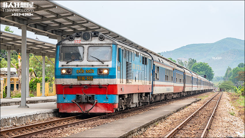 2024年5月,越南南北统一铁路,SE4次列车停靠在茶桥站。