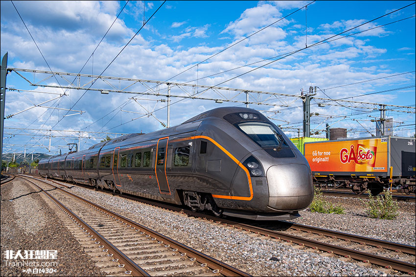 2024年7月,挪威东部自治市Lillestrøm,Flytoget旗下的78级高速列车驶向机场方向,该车由西班牙制造商CAF生产,最高时速245km/h。