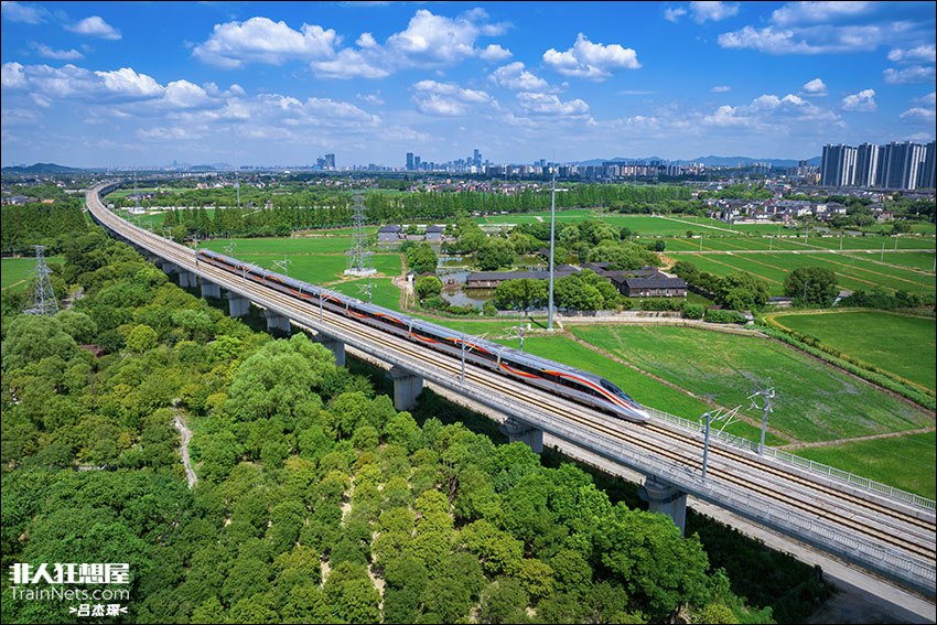 2024年7月24日,合杭高铁上的稀客——南局CR400AF-Z担当G2323次(杭州西-南昌)行驶在杭州未来科技城下。