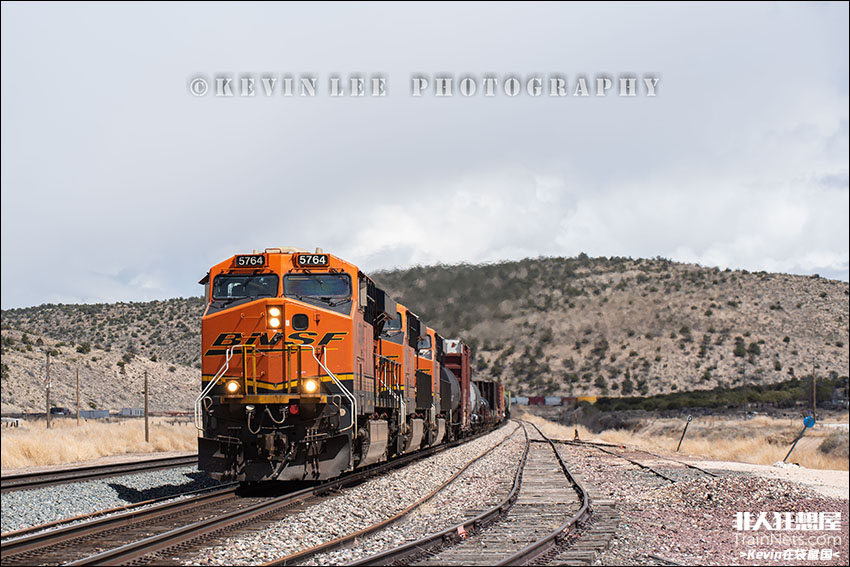 2024年4月。BNSF的货列行驶在拉斯维加斯附近,这一段铁路与著名的66号国道平行。翻过背景的山脉不远就是科罗拉多大峡谷。