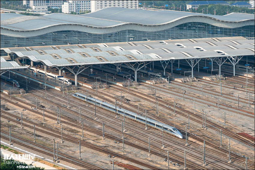 2023年10月11日,湖南长沙,京广高速线,“青铜剑”CRH380AM-0204动检列车自轮回送奔赴海南环岛高铁检测任务,途径长沙南站。