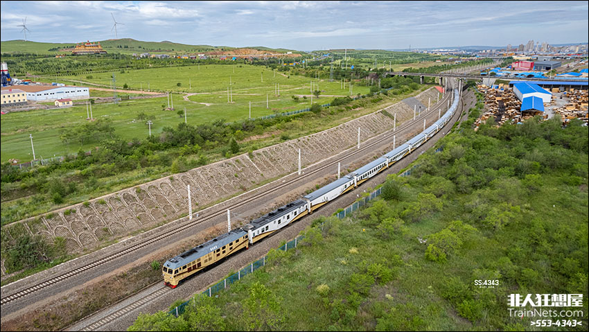 2024年7月28日,滨洲铁路,“林都号”旅游列车担当Y526次(满洲里-哈尔滨)接近胪膑站。