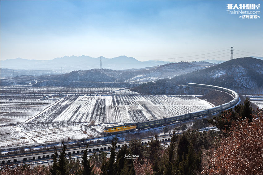 2024年1月25日。桃威线。DF4BK牵引K411次(北京-威海)行驶在下初至铺集区间。