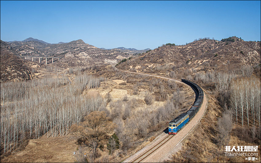 2023年11月,太焦线,DF4BD牵引31107次通过石会展线下层。