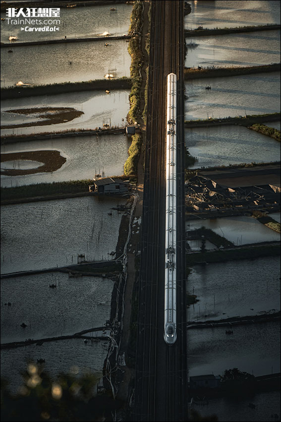 2024年7月4日。下午17时,CRH380A出宁德站行驶在宁德滨海特大桥上。