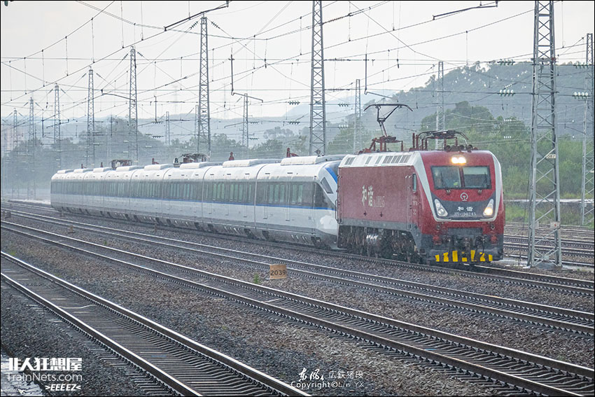 回送CRH6F在暴雨中南下