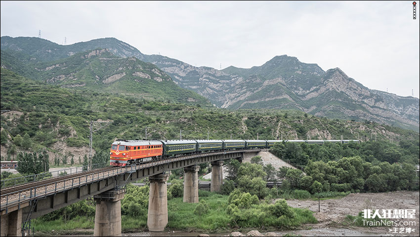2024年6月。北同蒲线,矿工号列车通过大桥。