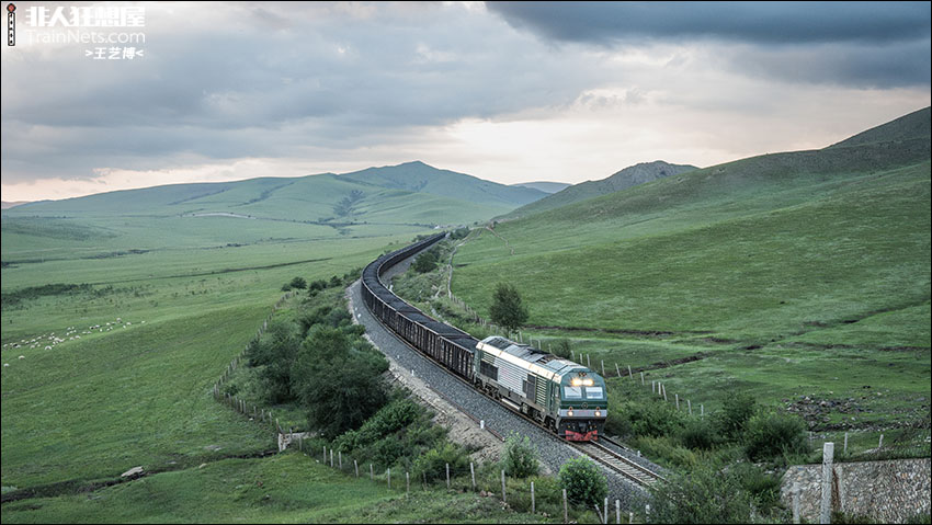 2024年8月。赤大白线,列车在日暮时分经过索博日嘎镇 。