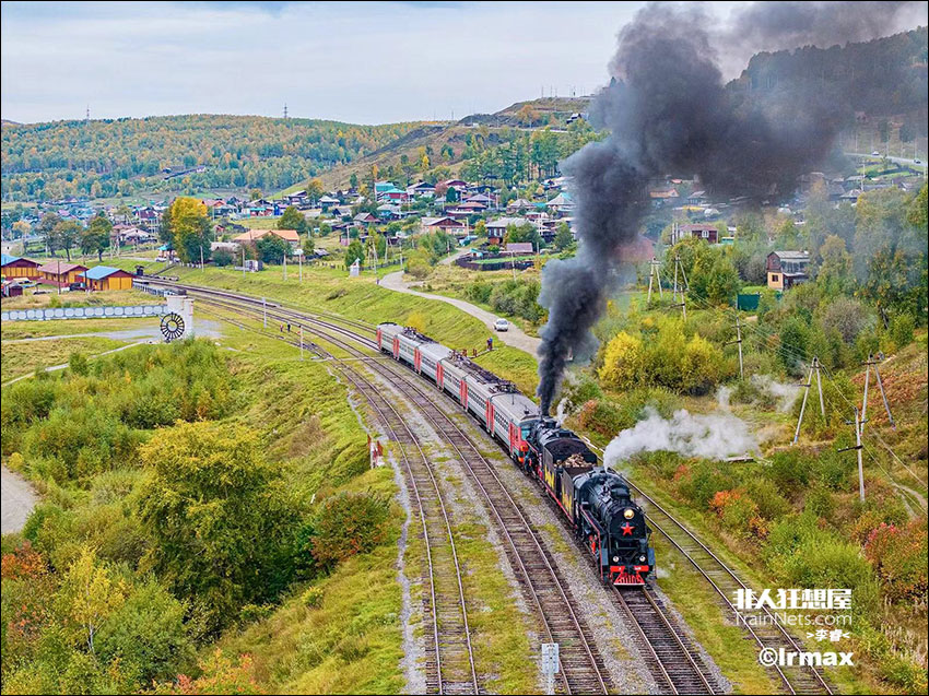 2023年9月。秋日中的贝加尔湖环湖旅游蒸汽火车正在吞云吐雾,这条旅游线路使用的是西伯利亚大铁路旧线,南起斯柳江卡,北至贝加尔港。