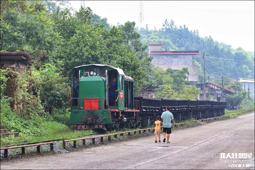2024年8月12日,马田矿窄轨列车通过公铁并行路段。