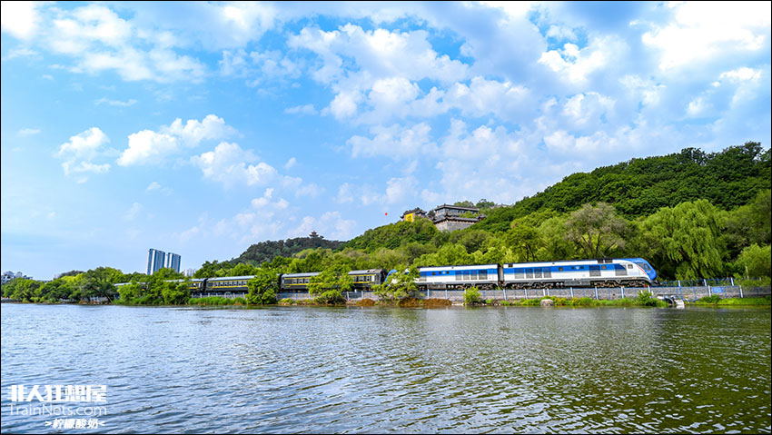 2024年6月4日,农历四月廿八,K95次列车(北京-吉林)沿沈吉线驶过因赶庙会而人声鼎沸的北山公园。
