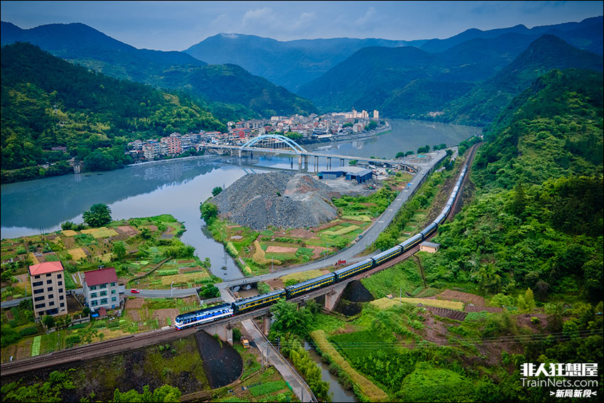 2024年5月2日。浙江丽水。金温瓜DF4B-9499牵引K8514次(温州-阜阳)行驶在丽水青田浮弋口村附近,行驶在浙南密林处的水墨丹青之间。