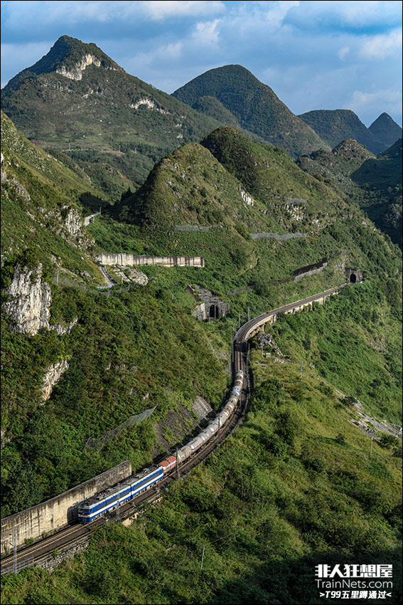 2024年9月10日,沪昆线,SS3B牵引小编组罐车通过夕阳中的山区,接近二道岩站。在列车通过后不久,山间的暴雨倾盆而下。