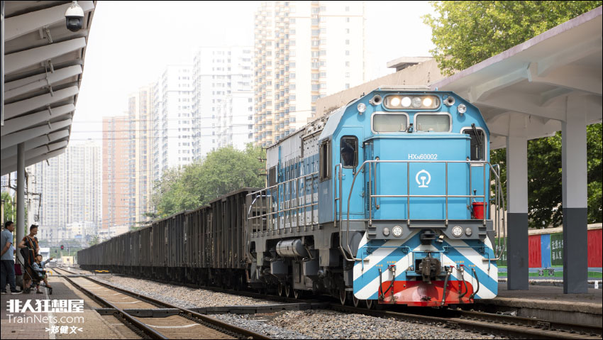 2024年5月,平煤铁路,HXN6牵引敞车货列通过平煤中心站。