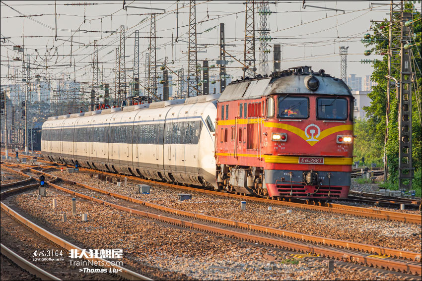 2024年8月26日,京广线。00213次列车回送广清城际CRH6A型动车组快速通过大朗站,驰援广惠城际。