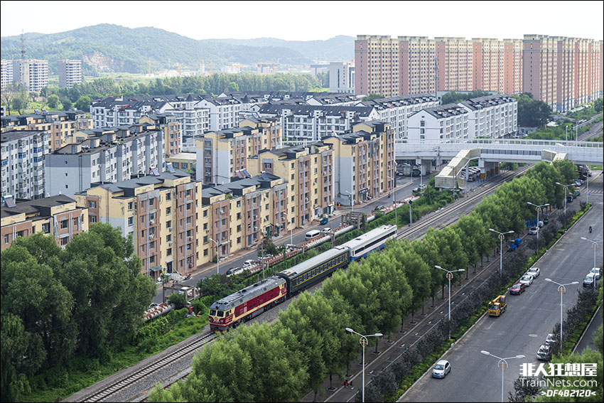 024年8月,四梅线。沈局沈段DF4D牵引JC5218次检测列车穿越城区去四平站方向。