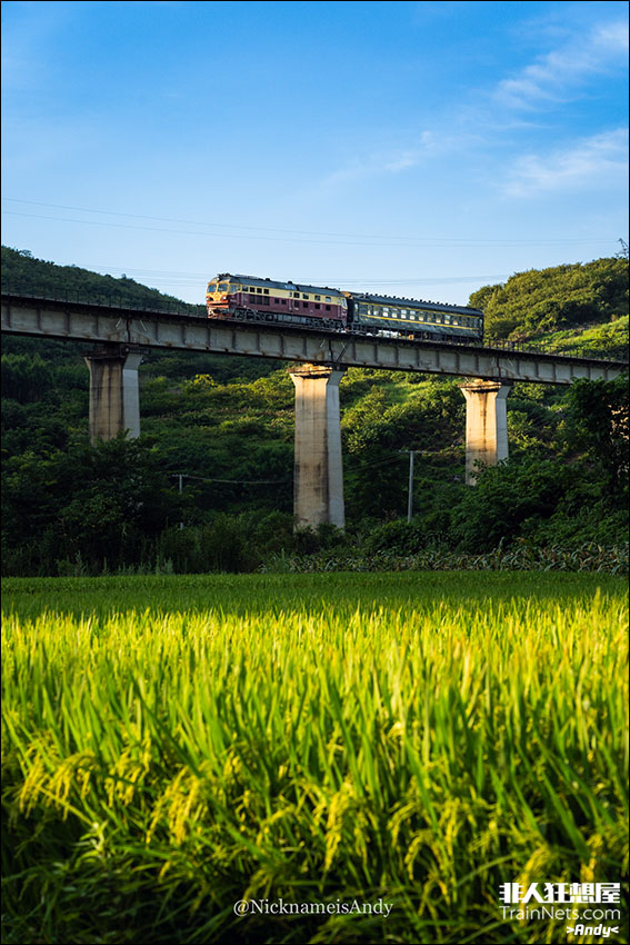 2024年7月6日傍晚时分,益湛线永贺通勤车驶过广西贺州茶源村一处稻田。