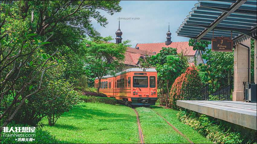2024年4月,广东东莞。华为松山湖小火车行驶在背坡溪流村园区J区内,光影下颇有欧式意蕴。