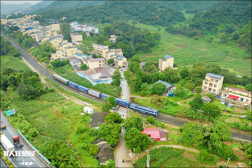 2024年9月。广西崇左凭祥。中越过境班列24511次驶过隘口道口,道口左边的土路就是隘口站遗址。隘口站在多年前就已被拆除。