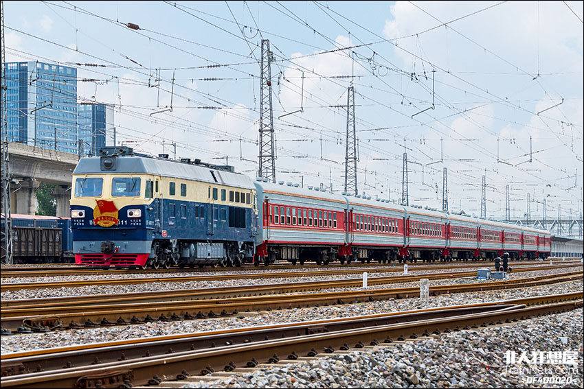 2024年8月。京沪线。DF4C-0011牵引红皮小列驶出黄村站。