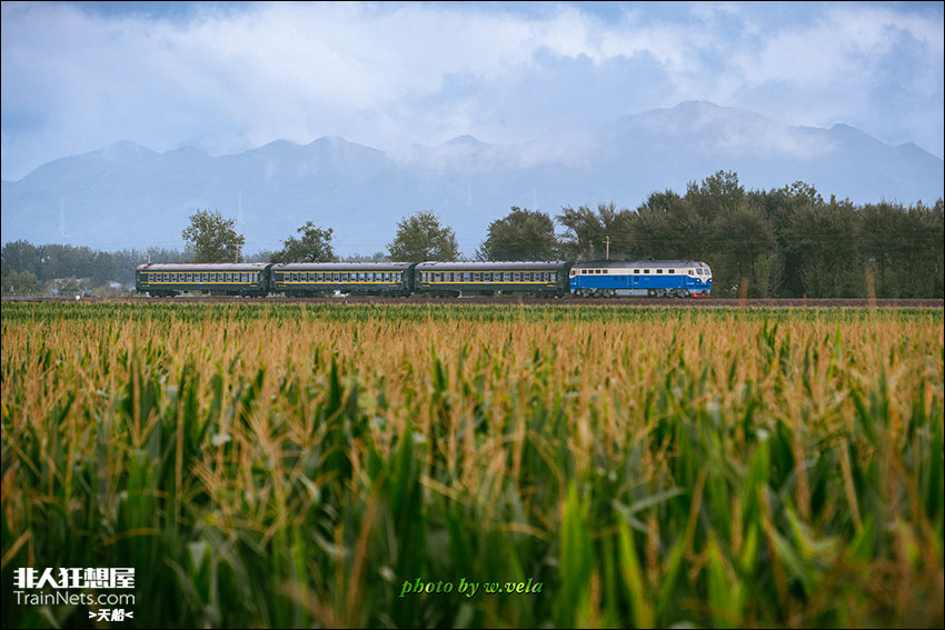 2023年8月,雨后京承,曾经还是真·绿皮火车的京承小票6420次列车(承德-通州西)通过统军庄站附近的玉米地。