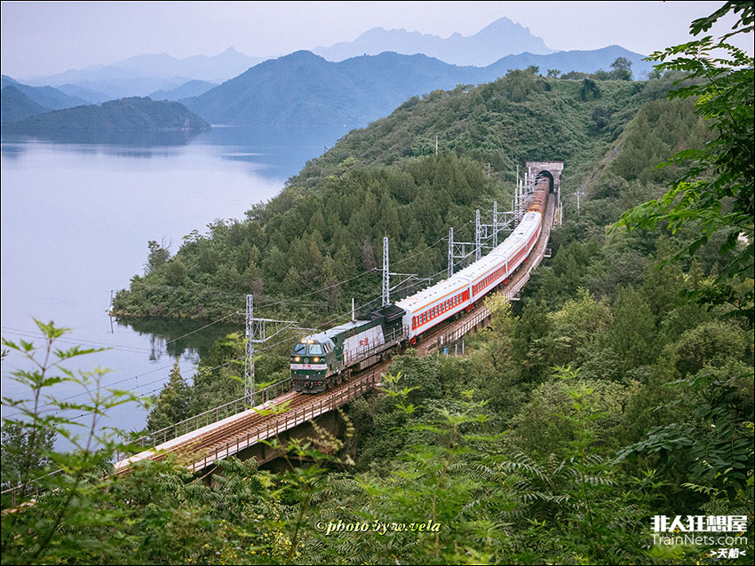 2024年8月,山与水的那一边……HXN5牵引京通线施工结束的红皮小列大机车组缓缓接近石塘路站。