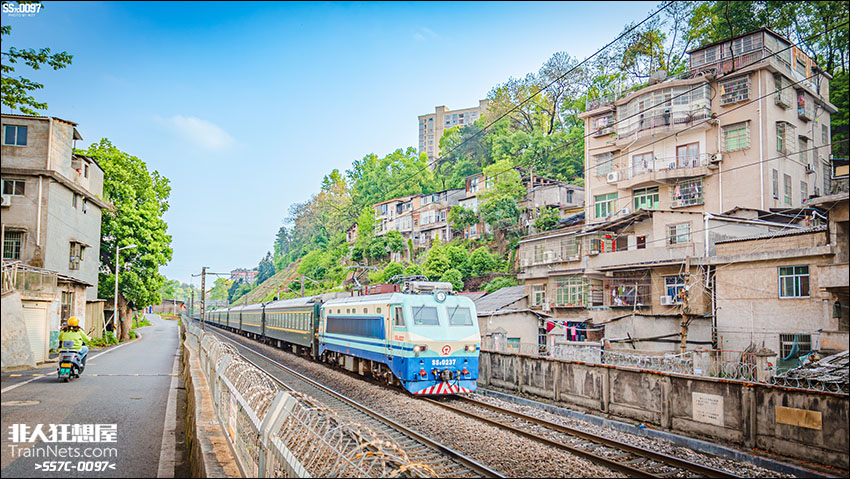 SS8牵引旅客列车接近株洲车站