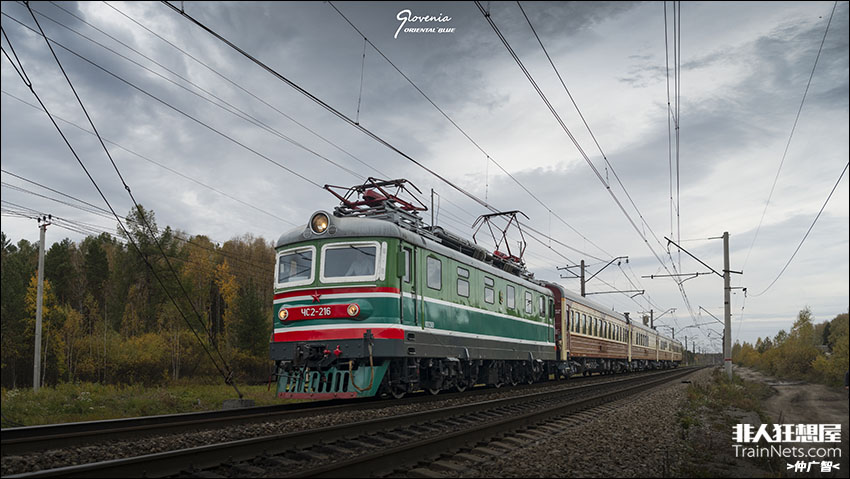 2024年9月29日,俄罗斯联邦斯维尔德洛夫斯克州叶卡捷琳堡市,1963年生产的古董机车ChS2-216号牵引“乌拉尔特快”旅游列车,接近舒瓦基什站。