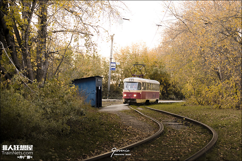 2024年9月29日,俄罗斯联邦斯维尔德洛夫斯克州叶卡捷琳堡市,经典车型太拖拉T3型行走在有轨11路上,到达终点绿岛站。