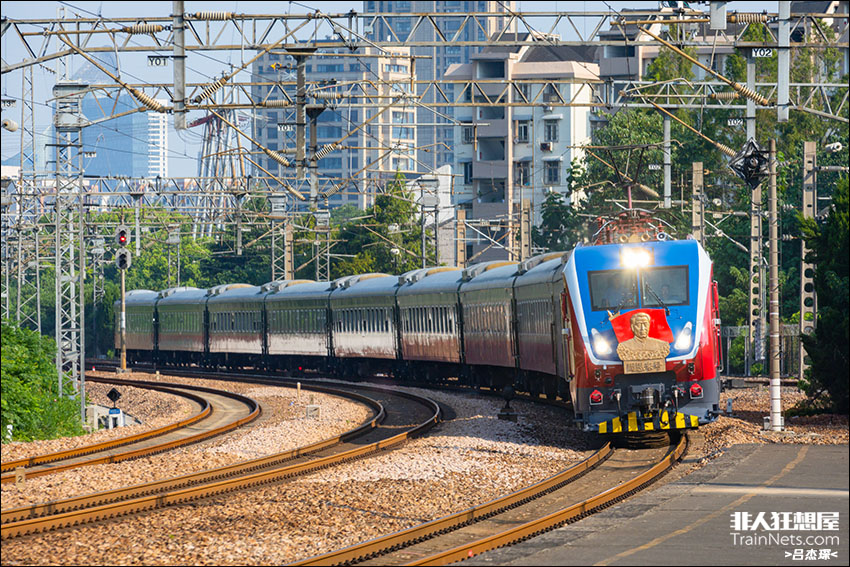 2024年8月6日,HXD1D-1898“周恩来号”牵引Y702次通过艮山门站。