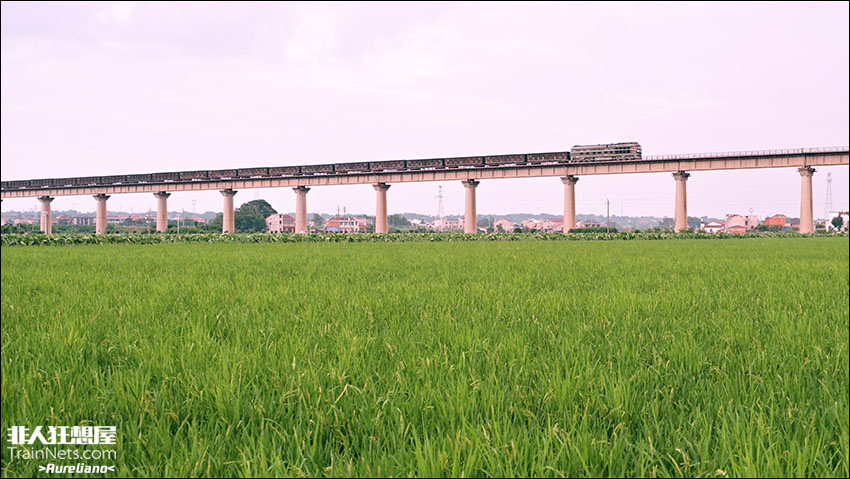 2024年6月12日傍晚,益湛铁路横市特大桥,东风4B货车高功率轰鸣通过大桥。