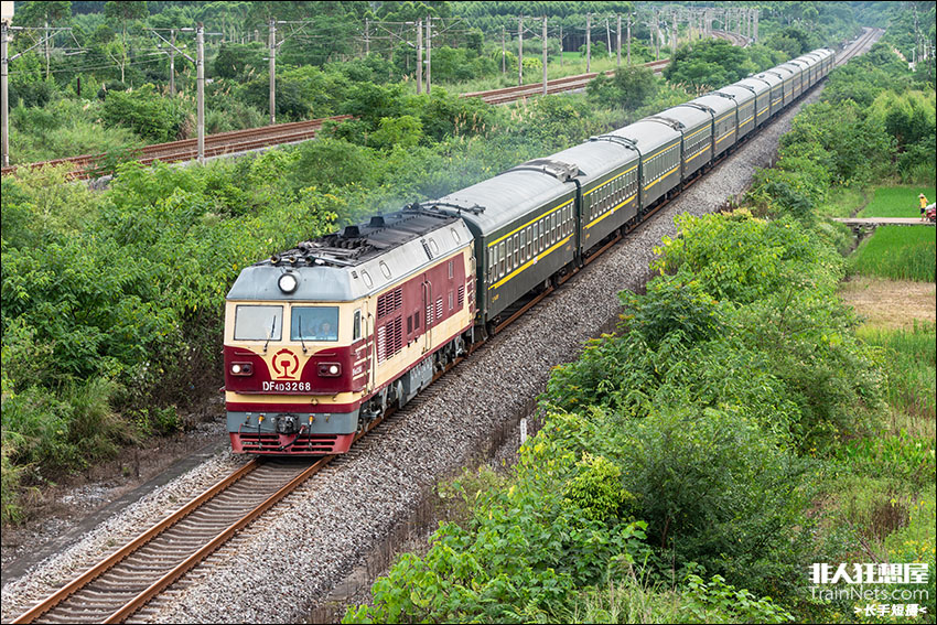 2024年6月,Y406次行驶在湘桂线桂林北-永州区段。自从衡柳线开通后,客车改走高铁线,该段已无图定客车,DF4DK只有旅游列车开行时会再次“客串”回归。