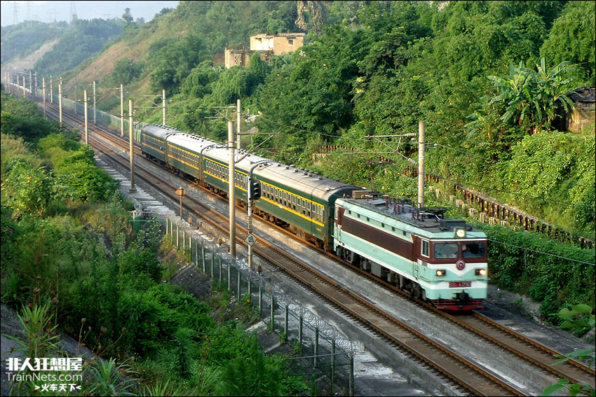2014年7月,重庆枢纽通勤车运行141线路所与蔡家车站区间的无砟轨道区段,当时这趟通勤车跑重庆北到梨树湾,磨心坡换向。