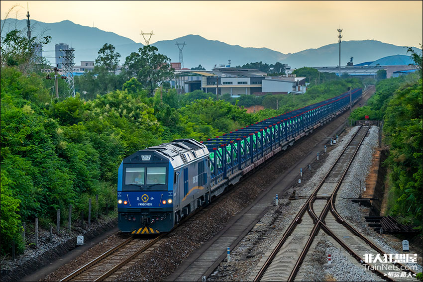 2024年10月1日。傍晚,25208次货列上行通过广茂铁路佛山市三水区云东海街道基塘村段,接近三水西站。