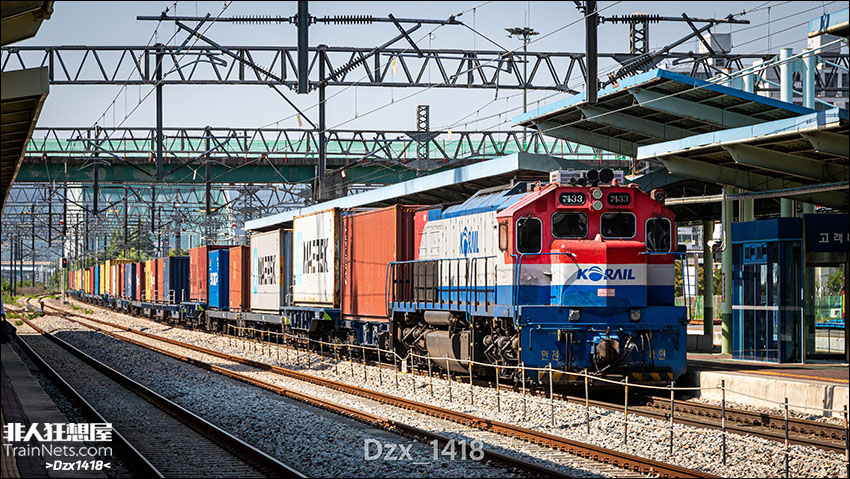2024年10月。京釜普速线下午,韩铁7400型内燃机车通过鸟致院站。牵引货物列车南下。