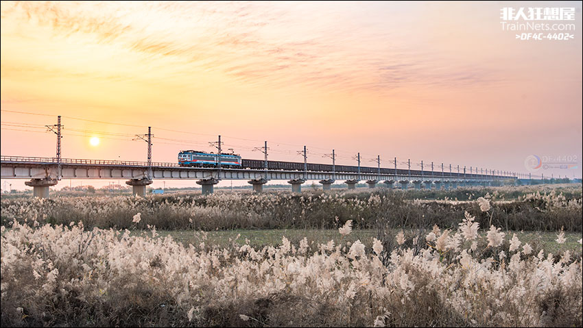 2024年11月23日,黄万线,中铁SS4G牵引煤列运行在日出朝阳之下。