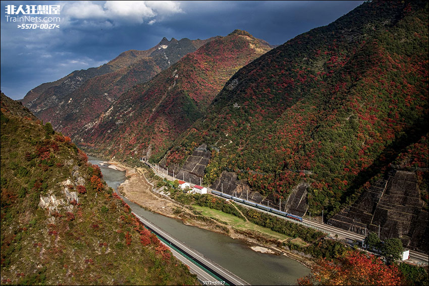 2023年10月,陕西汉中,6063次(宝鸡-广元)停靠在小站办客。