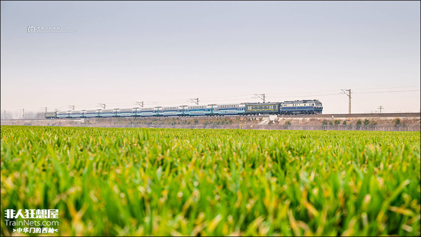2025年2月,DF11牵引上海局湖蓝双层K8418次列车(合肥-淮北)通过水蚌线田荣-李楼区间。
