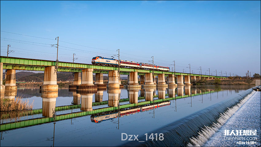 2024年5月,堤川行列车跨过美湖川。短小“无穷花”列车和宽广美湖川形成鲜明对比
