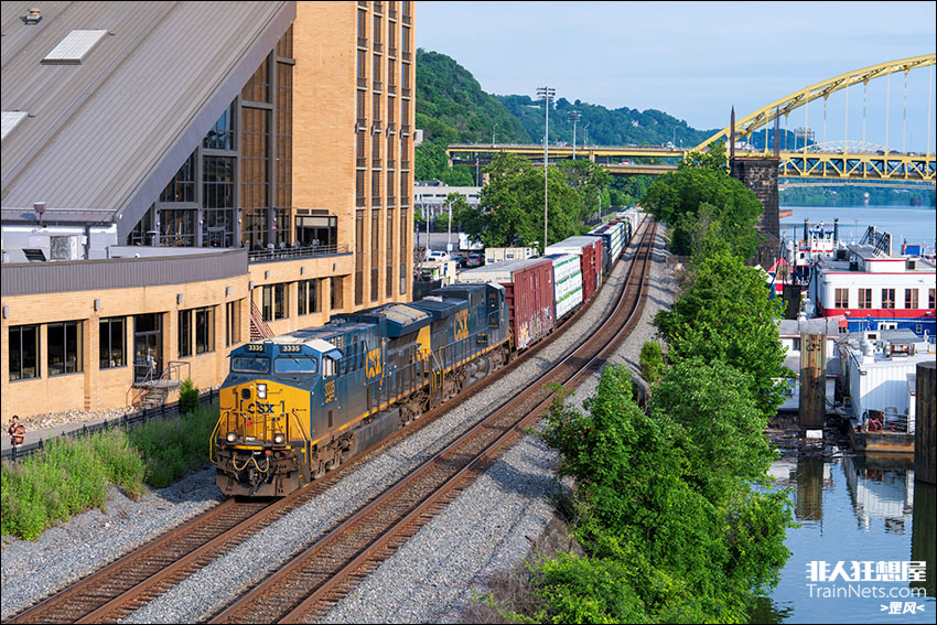 2024年6月14日。匹兹堡。CSX M421次混编货物列车行驶在匹兹堡线上。